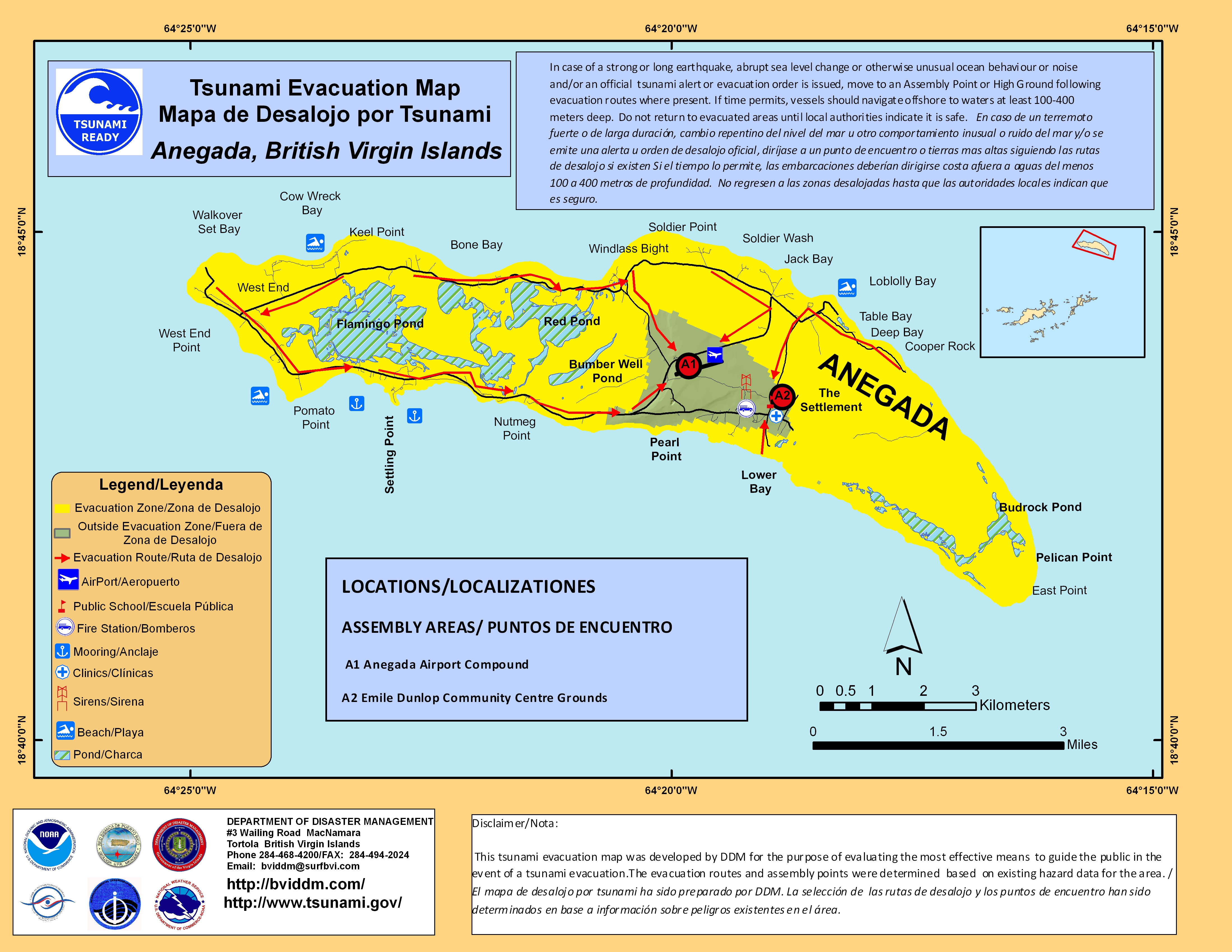 On November 2, 2021, the British Overseas Territory of the British Virgin Islands renewed its recognition for the second time as Tsunami Ready under the Pilot Community Performance Based Tsunami Recognition Programme of the United Nations Educational, Scientific and Cultural Organization Intergovernmental Oceanographic Commission of the (UNESCO/IOC) Intergovernmental Coordination Group for Tsunami and Other Coastal Hazard Warning Systems for the Caribbean and Adjacent Regions (ICG/CARIBE-EWS). The British Virgin Islands had originally received recognition 2014 and renewed for the first time in 2017. As part of the regional efforts to develop an end-to-end tsunami early warning system, the British Virgin Islands fulfilled the Programme’s guidelines at the territory level; thus empowering its vulnerable coastal communities to take effective action in the event of a potential tsunami and save lives. Outputs included the creation of inundation and evacuation maps, as well as the installation of emergency communication systems and signage for evacuation routes, assembly points and tsunami hazard zones. The Department of Disaster Management also undertook extensive public education, conducted drills, and formulated an emergency operations plan (EOP). The renewal of the recognition of the British Virgin Islands as Tsunami Ready was supported by the UNESCO/IOC Caribbean Tsunami Information Centre (CTIC) and the International Tsunami Information Center Caribbean Office (ITIC-CAR). The Tsunami Ready Programme incorporates risk knowledge assessment, preparedness actions and response planning with recognition being granted upon the satisfactory completion of a verification process confirming fulfilment of the guidelines.