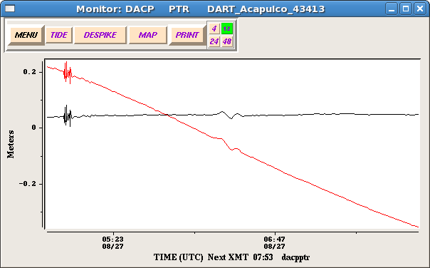 The El Salvador M 7.3 earthquake occurred on 27 August 2012 at 04:37 UTC at a depth of 131 km as a result of thrust faulting on or near the subduction zone interface between the Cocos and Caribbean plates. A maximum 36 cm amplitude tsunami was measured in Baltra, Ecuador.