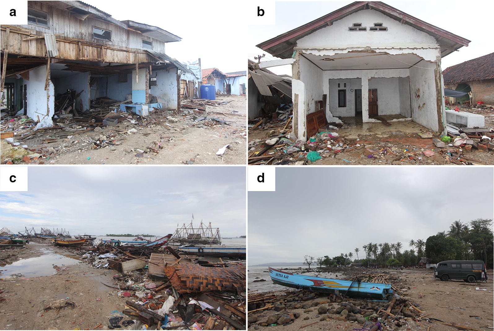 Observed tsunami damage in Sumur area: (a) heavily damage in traditional market area;