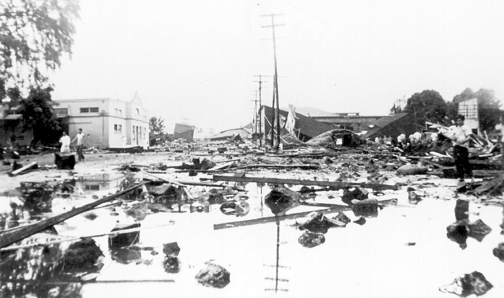 1 April 1946 Aleutian Islands tsunami hitting Hilo, Hawaii. Photo courtesy of Bishop Museum Archives.