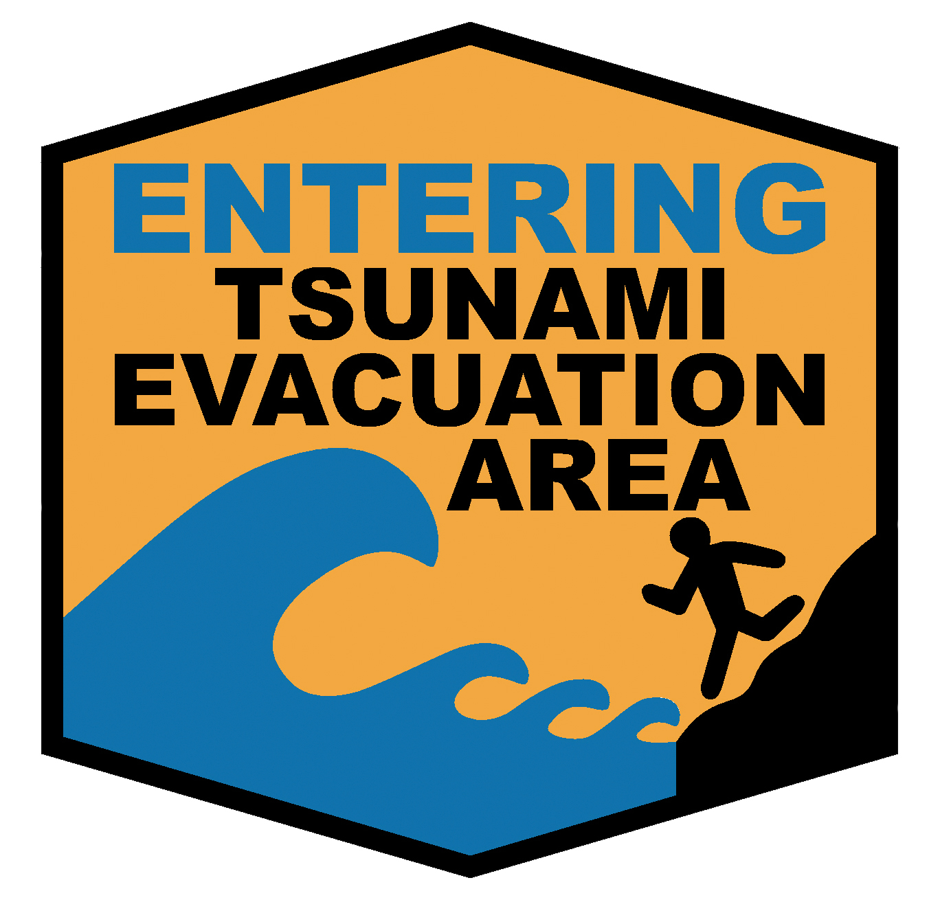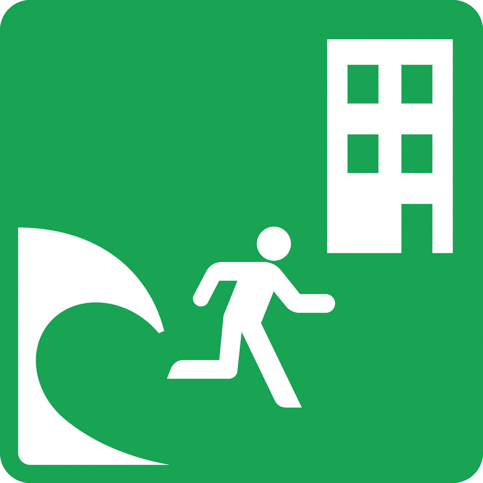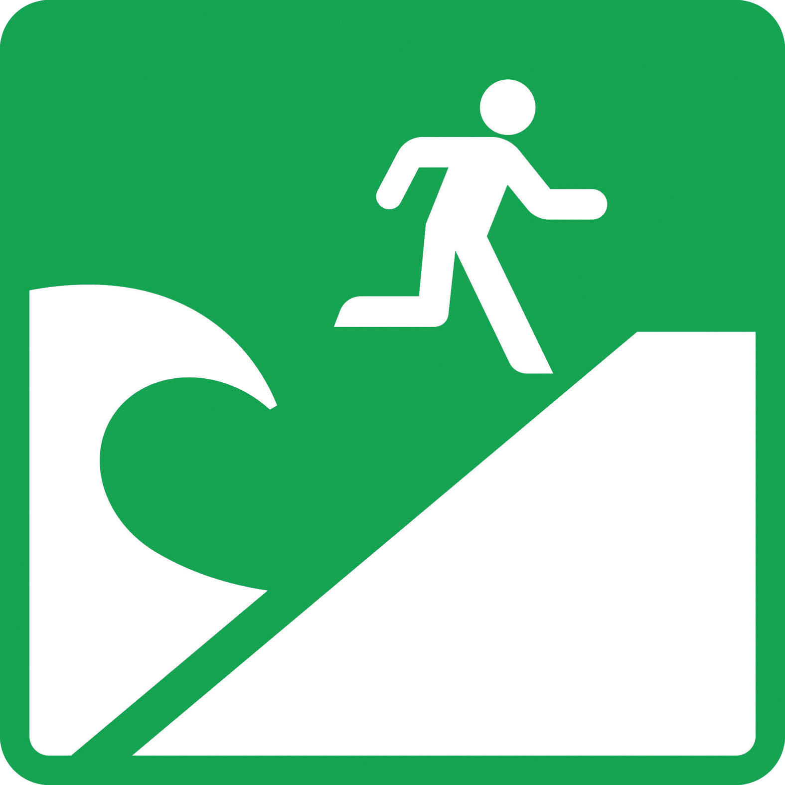 Tsunami hazard sign approved by International Standards Organization (ISO) in 2008.
