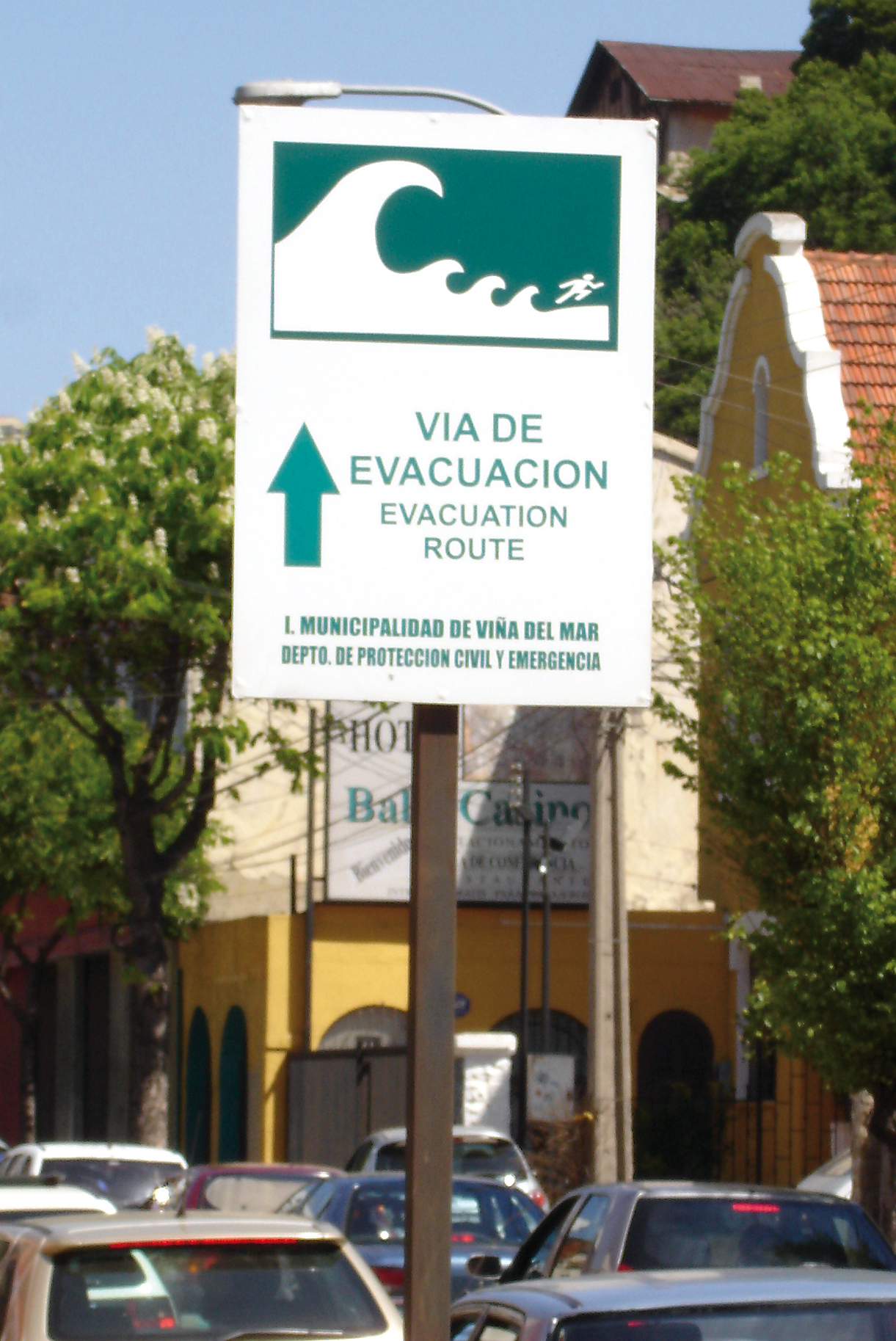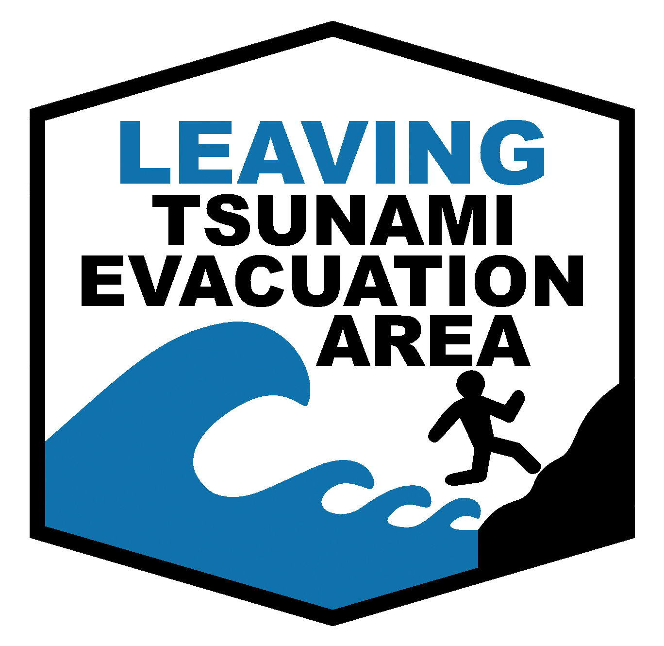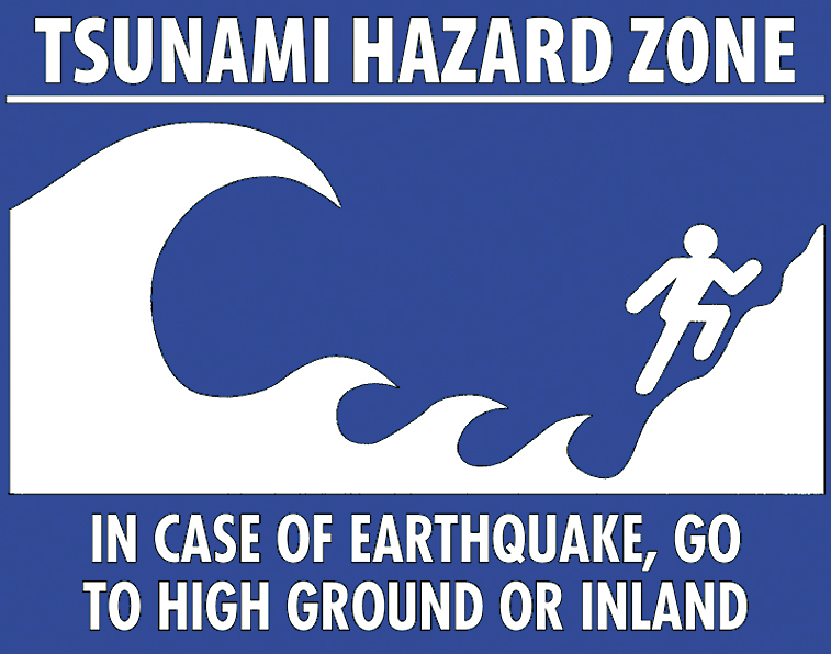 Tsunami hazard sign approved by International Standards Organization (ISO) in 2008.
