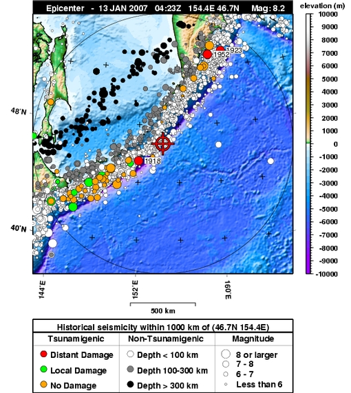 13 January 2007, Mw 8.1, Kuril Islands